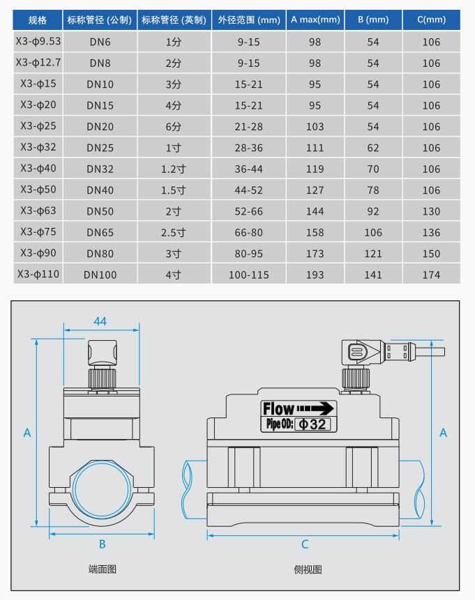 名稱:?夾鉗式小管專用超聲波流量計X3